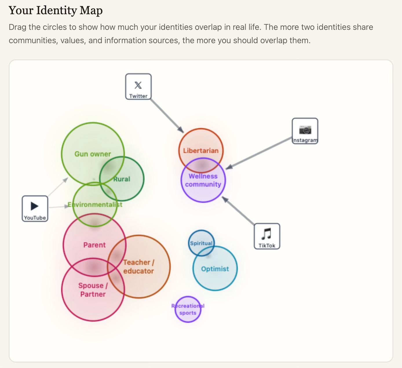 Drag your identity circles to show how much they overlap in real life